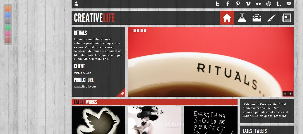 Creativelife включает в себя мощный слайдер, что позволяет добавлять практически любые СМИ на главную страницу вашего сайта, позволяет упорядочить с помощью всего лишь нескольких щелчков мыши. Особенности: поддержка до трех фото в слайде, поддержка видео в лайде.